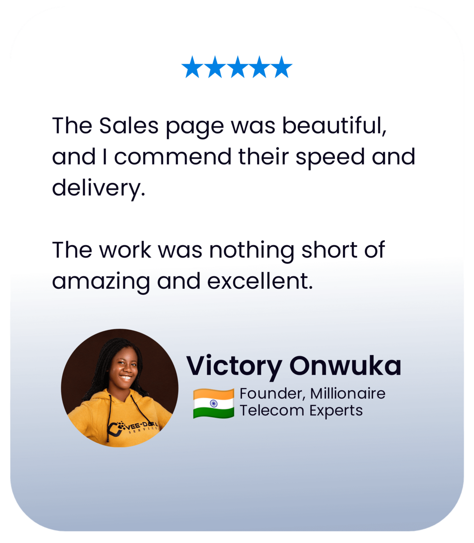 Once you provide the details for your sales page, I will block out the time, mental power and resources to craft your offer, write the copy, and create your sales page, so you can have it and everything else I have promised in just 7 days (or less.)